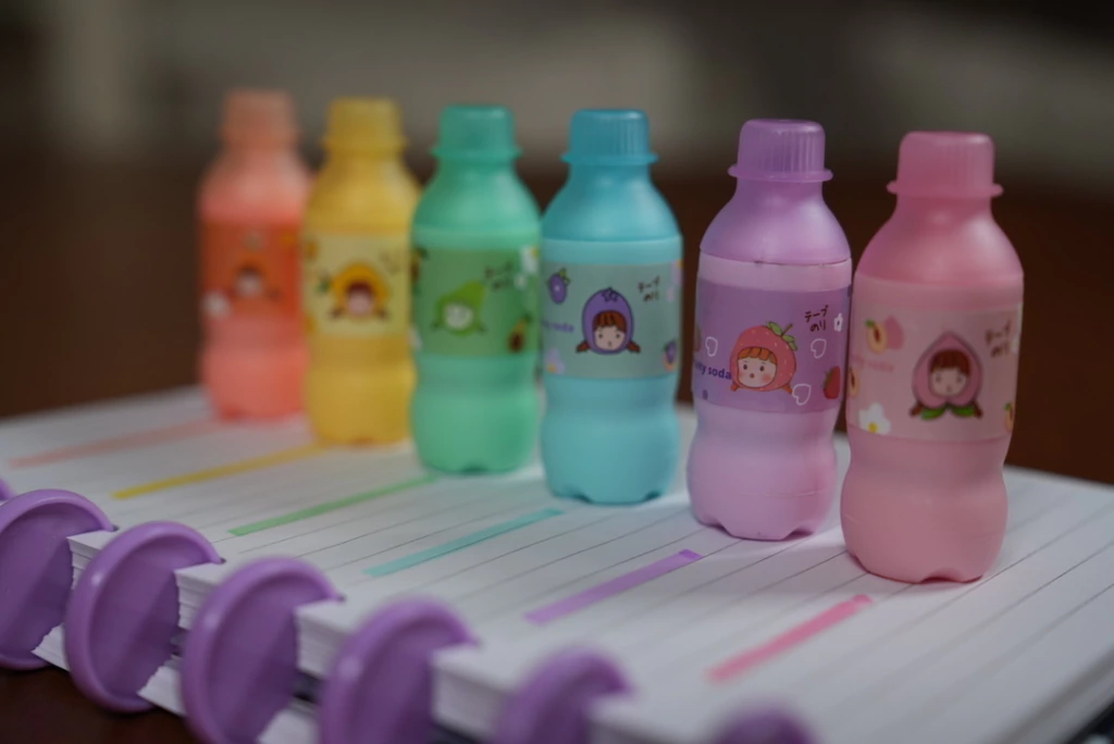 Descubrí el set de Mini Resaltadores Botellitas Colores Pastel Kawaii, ideal para darle un toque dulce y original a tus apuntes y proyectos. Cada botellita mide 7 cm, perfecta para llevar en tu estuche o mochila.