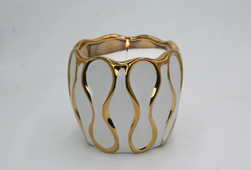 Descubrí el Portavela de Ceramica Esmaltada Blanco y Dorado 13x14 cm, un complemento elegante para ambientar tus espacios con calidez y estilo. Su diseño delicado combina el brillo dorado con la pureza del vidrio blanco, ideal para crear atmósferas acogedoras en cualquier rincón.